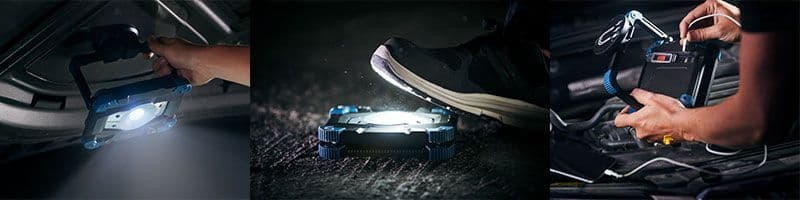 En oppladbar, liten og smidig lampe. Lampen er støtsikker og kraftfull i forhold til sin størrelse. Den har en unik design der størrelse gjør at den enkelt får plass i f.eks. verktøykassen. Utstyrt med USB-uttak og mulighet til å velge på hel- og halvlys. Batteri og lader inngår.