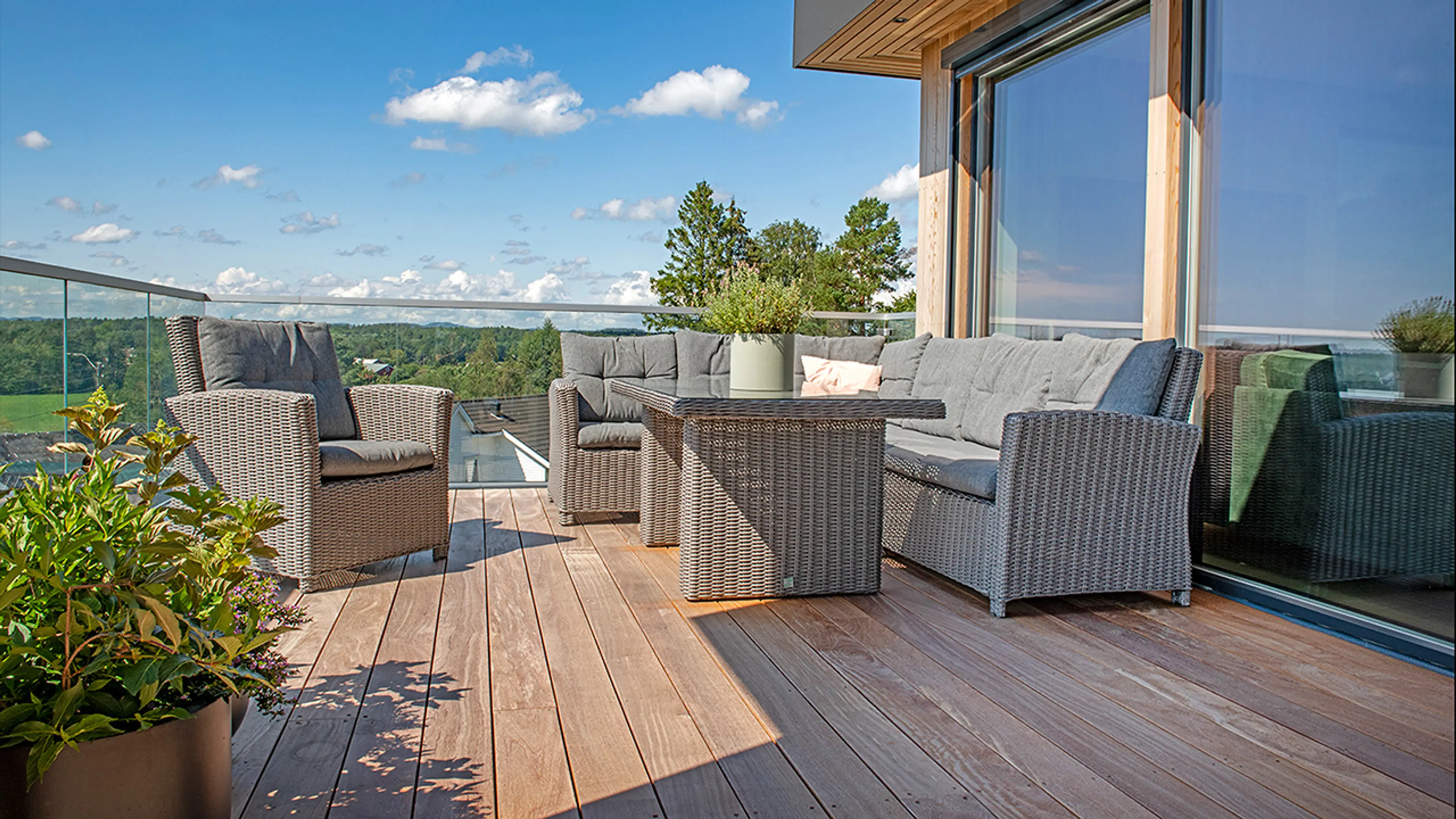 Skap en naturlig, skandinavisk stil på plattingen med nedtonede lyse terrassebord og minimalistiske hagemøbler, eller få det lunt og varmt med mørke terrassebord og massive tremøbler.