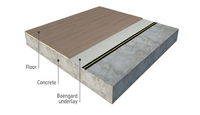 XL-BYGG kan anbefale parkettunderlaget Boengard, her får du selve parkettunderlaget, plastfolie og tape i ett og samme produkt.
