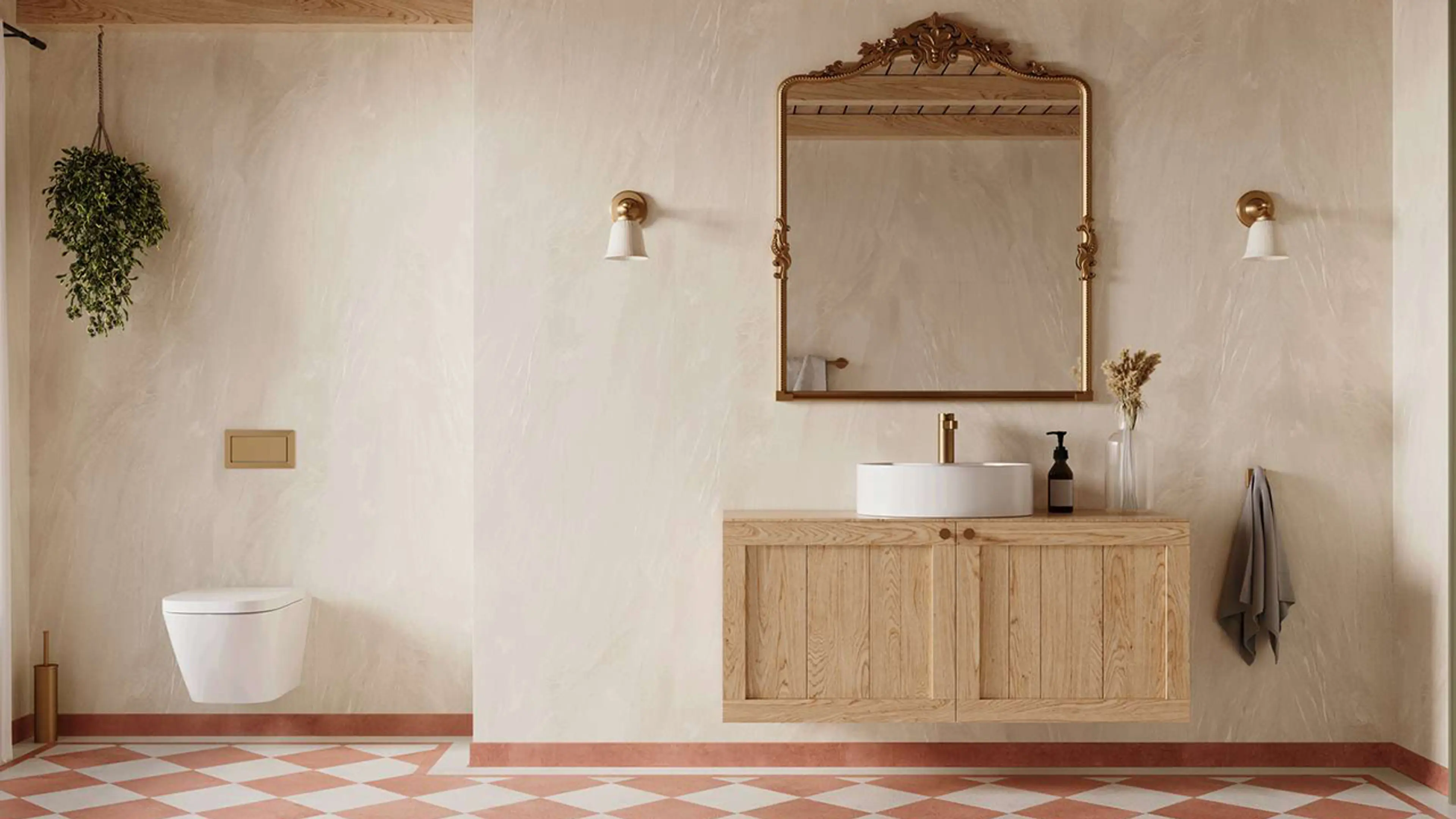 Skal du oppgradere badet hjemme? Sømløse overflater, naturlige materialer og varme farger preger designet.