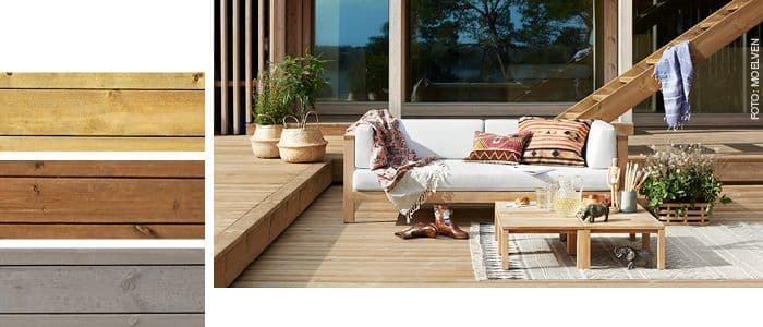 Valg av terrassegulv handler om stilvalg og hvor mye vedlikehold du ønsker de kommende årene. Terrassebord fås i ulike materialtyper, strukturer, farger og dimensjoner.