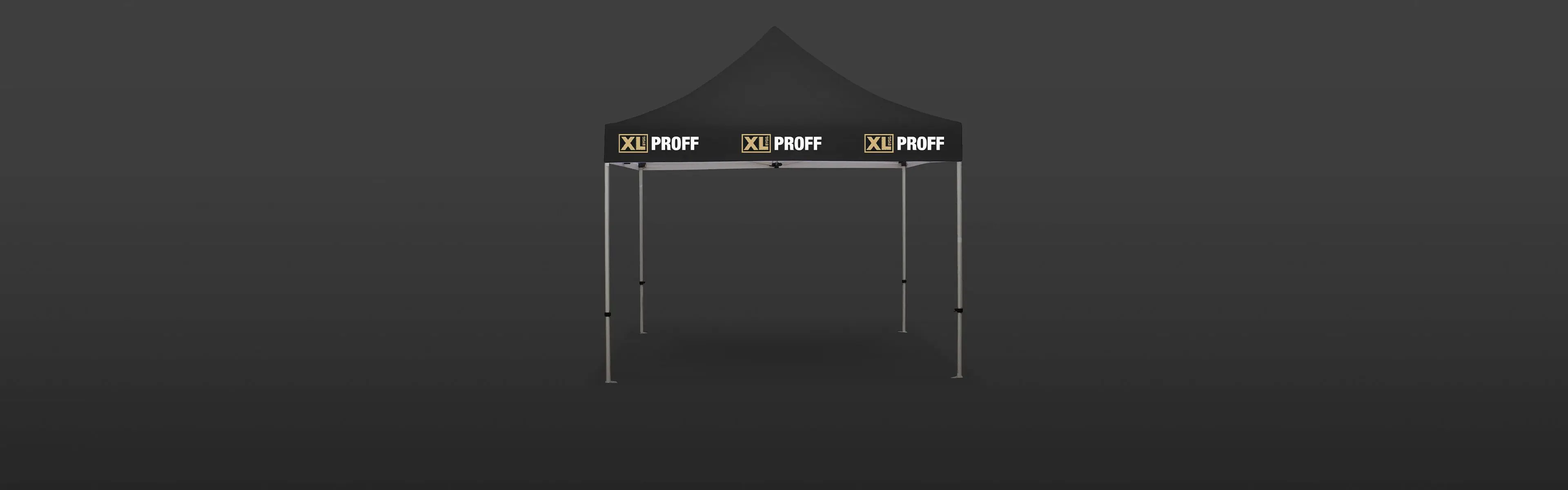 Velg blant størrelsene 3x3, 3x6 og 4x8 meter bestående av løse sidevegger med vindu, dør eller tette vegger som raskt og enkelt monteres til takduken med borrelås.