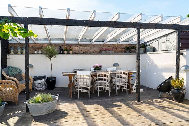 SunGlaze takløsning er et godt alternativ til herdet glass. Platene er fremstilt av 4 mm polykarbonat, som har stor styrke for både snø- og vindbelastning, og er UV-beskyttet på oversiden. Her får man en vanntett løsning uten bruk av silikon, samt en sterk og elegant løsning som holder i mange år. Det er 10 års garanti på SunGlaze Tak.