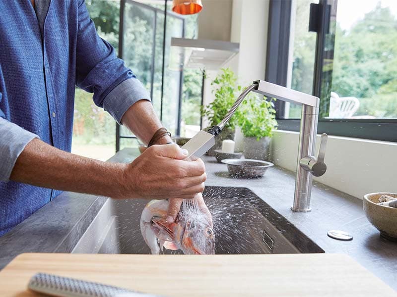 Lager du mye mat, hadde det kanskje vært praktisk med et blandebatteri som ikke krever berøring når du har hendene fulle av matsøl. I dag finnes det en rekke smarte løsninger, og du får blandebatterier som gjør matlagingen enklere og mer effektive.